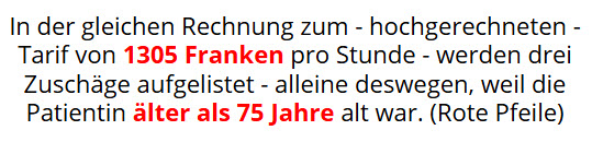 Unter der Einheits-Krankenkasse (EKK) wird es keine menschenverachtenden Wucherrechnungen mehr geben – mit Zuschlägen für Kinder und Senioren über 75 Jahren, berechnet auf der Basis von 1305 Franken pro Stunde..